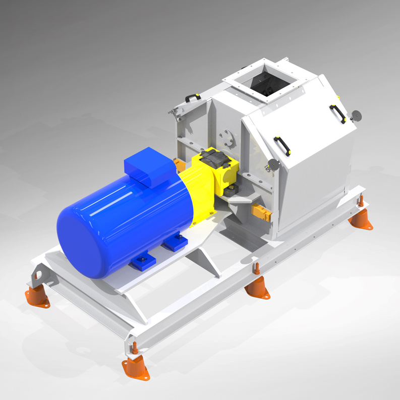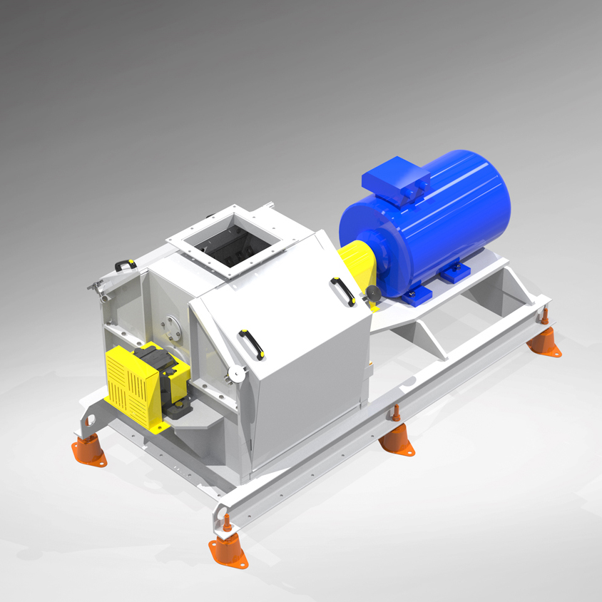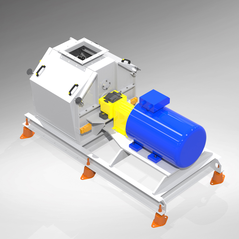 Działanie rozdrabniacza bijakowego jest bardzo proste. Materiał rozdrabniany jest w komorze głównej młyna, do której podawany jest za pomocą podajnika. Do rozdrabniania dochodzi na drodze uderzania zastosowanych w młynie bijaków o surowiec oraz samego surowca o ściany komory młyna. Wielkość oraz regularność uzyskiwanej frakcji zależy od średnicy otworów zastosowanego we młynie sita. Ważne jest, żeby materiały trafiające do komory nie były zanieczyszczone. Inaczej mogą spowodować poważne uszkodzenie urządzenia. Zalecamy odbiór rozdrobnionego materiału spod młyna za pomocą transportu pneumatycznego, ponieważ umożliwia to zastosowanie separatora pneumatycznego do odsiania kamieni i innych zanieczyszczeń, które mogą być przyczyną eksplozji. Zastosowanie transportu pneumatycznego zwiększy również wydajność młyna i pozwoli wygodnie przetransportować materiał do kolejnych urządzeń w linii technologicznej.